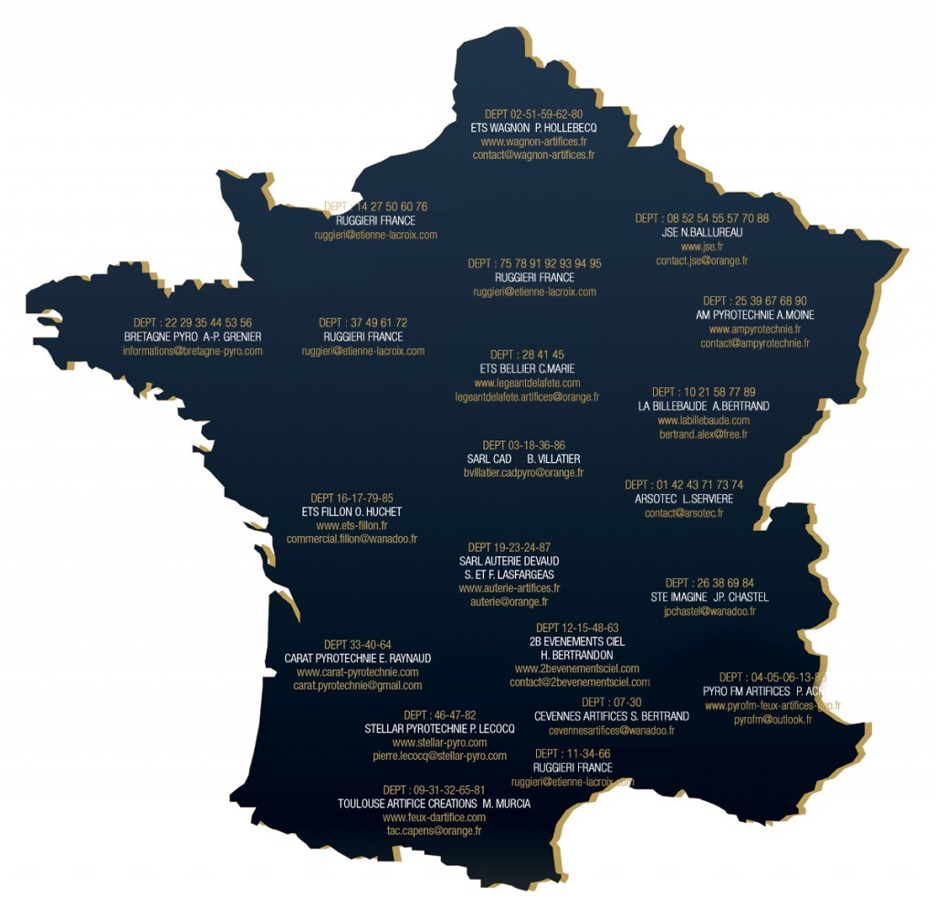 Ruggieri attache une grande importance à la qualité, à la sécurité et au respect des normes environnementales. C'est pourquoi chaque Concessionnaire exclusif Ruggieri s'engage à respecter notre charte pyrotechnique. Cette charte guide le métier et met en avant des valeurs essentielles.